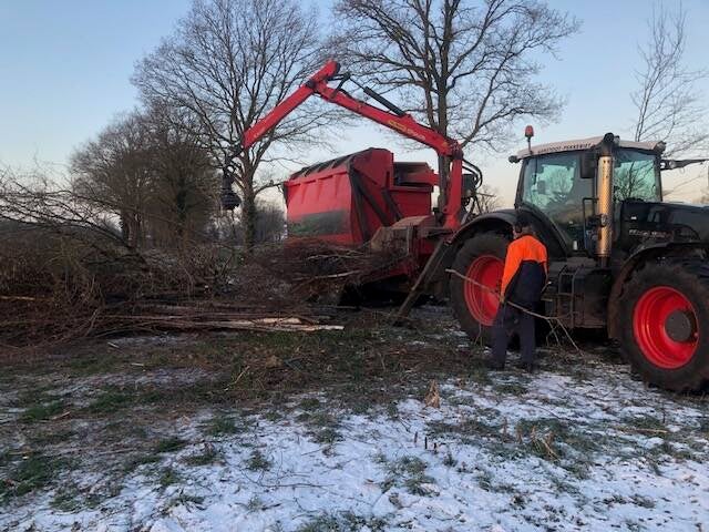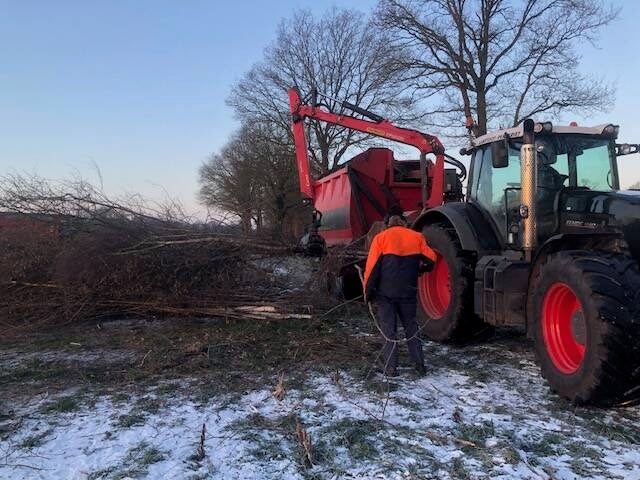 Het snoeihout wordt bij u thuis of op land versnipperd en afgevoerd. De takken dienen wel